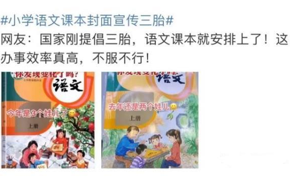 在相關部門推出三胎政策后,就像是在家長的心里扔了一顆深水炸彈,在網(wǎng)絡上也引起了很多話題的討論,有不少家長都表示不會再生三胎了。其實從小學生的教材封面就可以看出,家長對于三胎政策比較敏感。