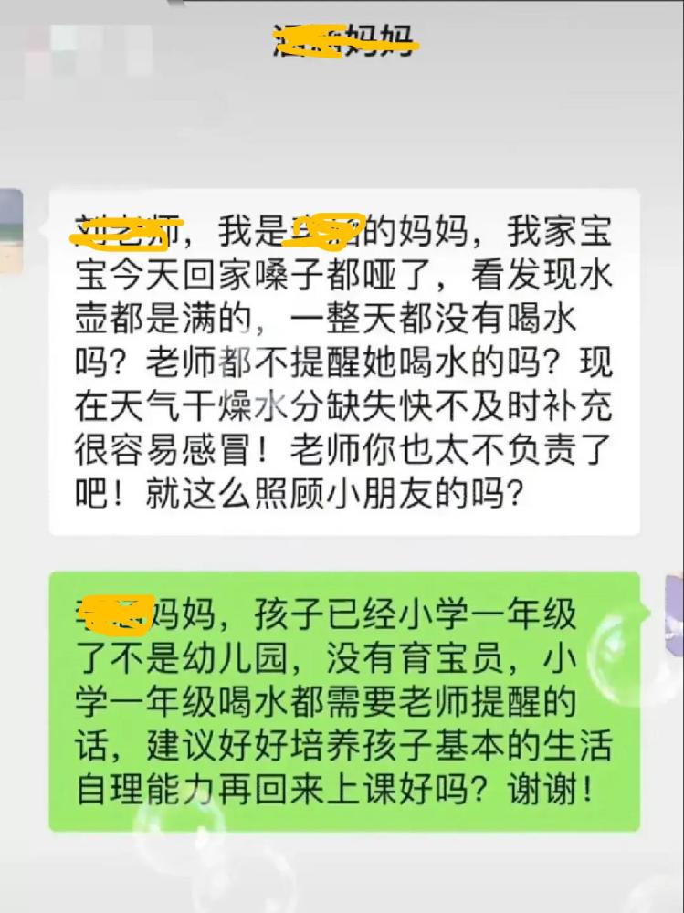 一年級學(xué)生一整天沒喝水,家長訓(xùn)斥老師不負(fù)責(zé)任,被懟:一年級不是幼兒園