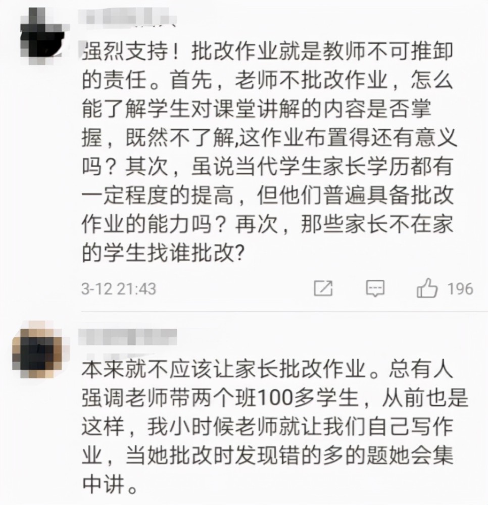 簡(jiǎn)而言之,家長(zhǎng)認(rèn)為批改作業(yè)是老師的義務(wù),但老師覺(jué)得自己時(shí)間不夠精力有限,雙方各執(zhí)一詞爭(zhēng)執(zhí)不下。