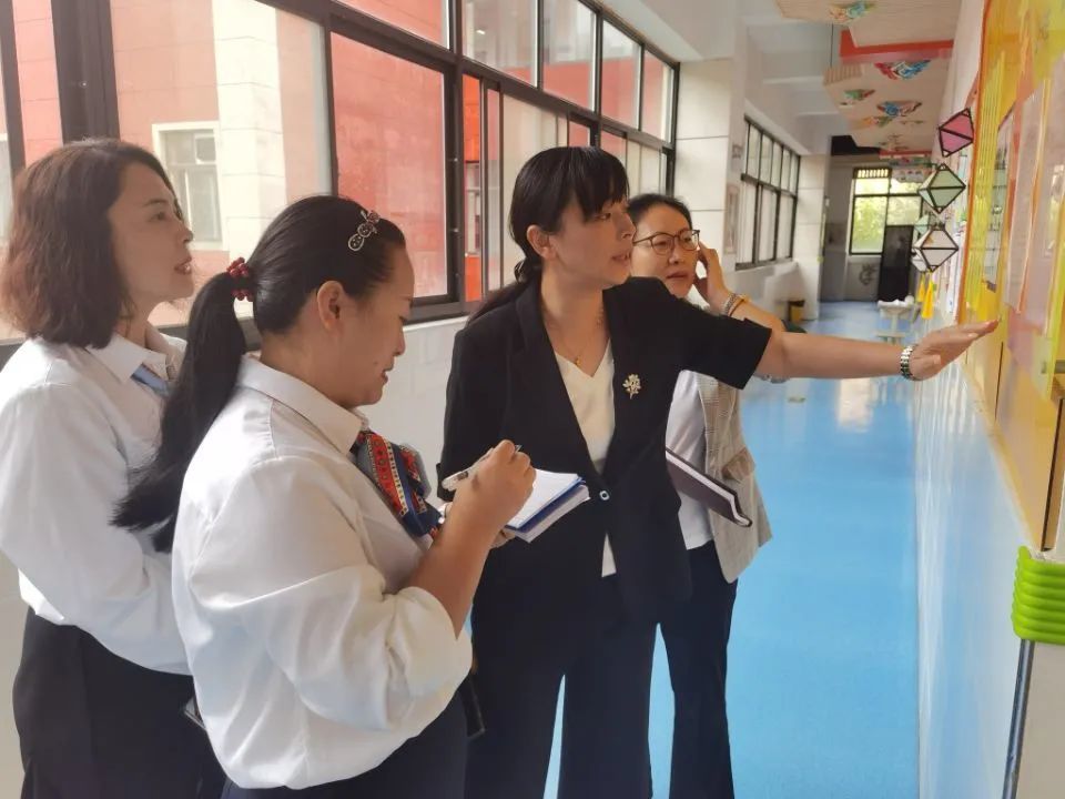 未央?yún)^(qū)語委辦王蓉老師、侯若忻老師,未央?yún)^(qū)進校教研室中學(xué)語文教研員王敏霞,市級語言文字示范校大明宮小學(xué)副校長何凱祥,一行4人,通過聽取匯報、查閱資料、查看校園文化、學(xué)生教師座談等幾個環(huán)節(jié)對“名校+”教育聯(lián)合體語言文字工作進行了全面的檢查和了解。檢查組首先聽取了“名校+”聯(lián)系人三星小學(xué)副校長白亞榮的“名校+”教育聯(lián)合體語言文字工作匯報。