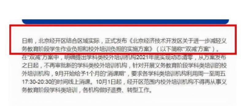 北京經(jīng)開(kāi)區(qū)發(fā)出了雙減的進(jìn)一步方案,對(duì)于原來(lái)周中可以開(kāi)班的學(xué)科類培訓(xùn)課程,將于2021年底實(shí)行動(dòng)態(tài)清零,9月份是一個(gè)緩沖期,從十一假期開(kāi)始,該地區(qū)的所有校外培訓(xùn)班的學(xué)科類課程面臨關(guān)停,周中上課已然成了過(guò)去式,對(duì)于已經(jīng)付費(fèi)的家長(zhǎng),各機(jī)構(gòu)也將于2周一到周五實(shí)行退費(fèi)和消課。