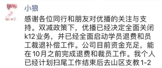 同時(shí),新東方在線副總裁、東方優(yōu)播CEO朱宇也表示,個(gè)人計(jì)劃未來(lái)將去山區(qū)支教1-2年。