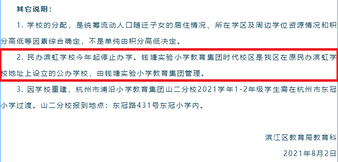 目前,各地“民轉(zhuǎn)公”工作已紛紛開始。前段時(shí)間,濱江的濱虹學(xué)校,今年已正式停止辦學(xué):
