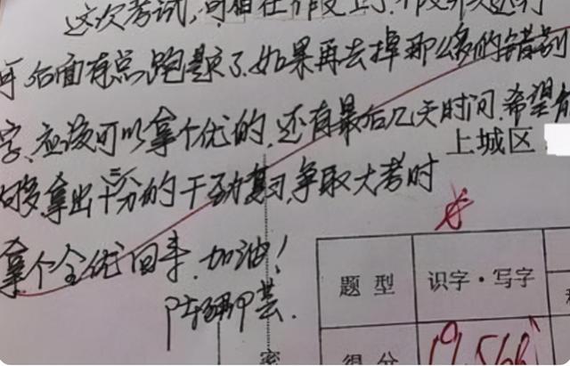 就在這樣的教育環(huán)境下,有的家長(zhǎng)的用心就會(huì)顯得格外貴重了,學(xué)生試卷上不僅有他們名字,甚至還有一些修改評(píng)語(yǔ)和總結(jié)。