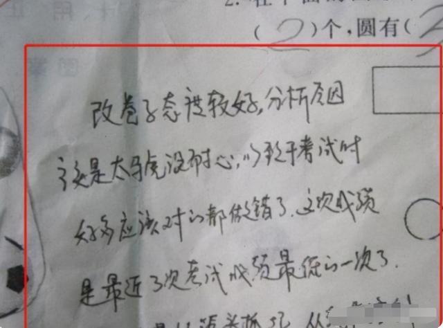 就拿這位家長(zhǎng)來(lái)說(shuō),他在試卷上寫(xiě)下了學(xué)生改卷子時(shí)的態(tài)度,還分析總結(jié)錯(cuò)題原因,最后還寫(xiě)了一段對(duì)學(xué)生鼓勵(lì)的話(huà),這些都能表明他確實(shí)認(rèn)真看了孩子的試卷。