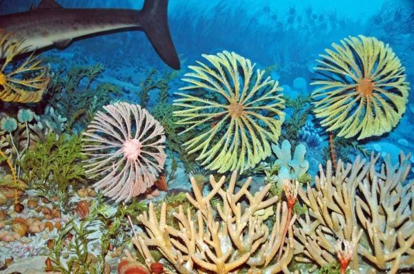 泥盆紀海底環(huán)境復原模型中的海百合 | James St. John