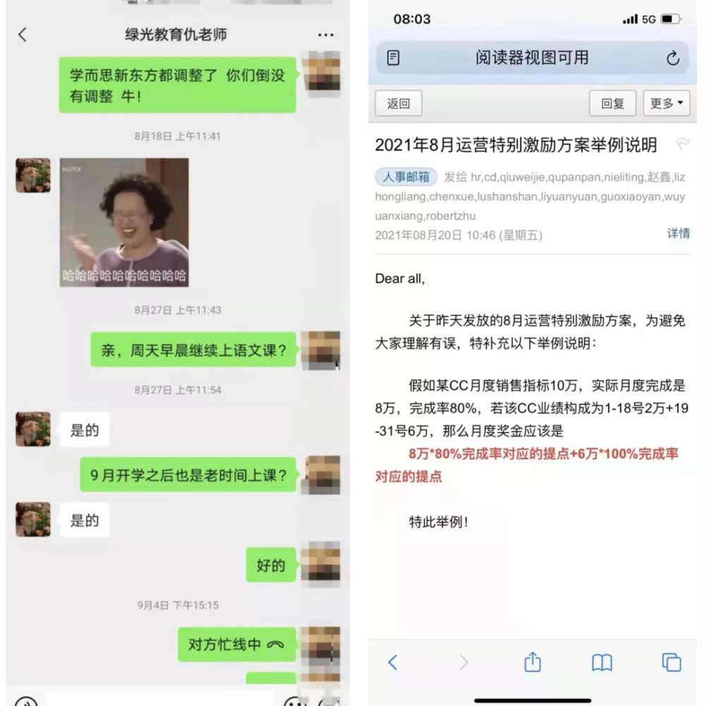 而在這之前,“綠光教育”在整個2021年8月、甚至是9月3日之前還在賣力地推銷各類培訓(xùn)課程!甚至是其內(nèi)部,也在給所有的銷售人員、老師發(fā)8月運(yùn)營激勵特別方案的郵件!
