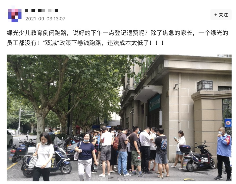 2021年9月3日,在上海經(jīng)營了20年之久的學(xué)科類教培機(jī)構(gòu)――“綠光教育”毫無征兆地在其官方微信公眾號發(fā)布了其破產(chǎn)關(guān)校的公告。