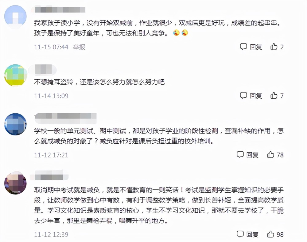 雙減已為學(xué)生減去了太多學(xué)習(xí)方面的壓力,仿佛生活里只剩下玩樂。家長們也希望通過考試讓學(xué)生清醒一下,放飛自我和減輕負(fù)擔(dān)是完全不同的兩回事。