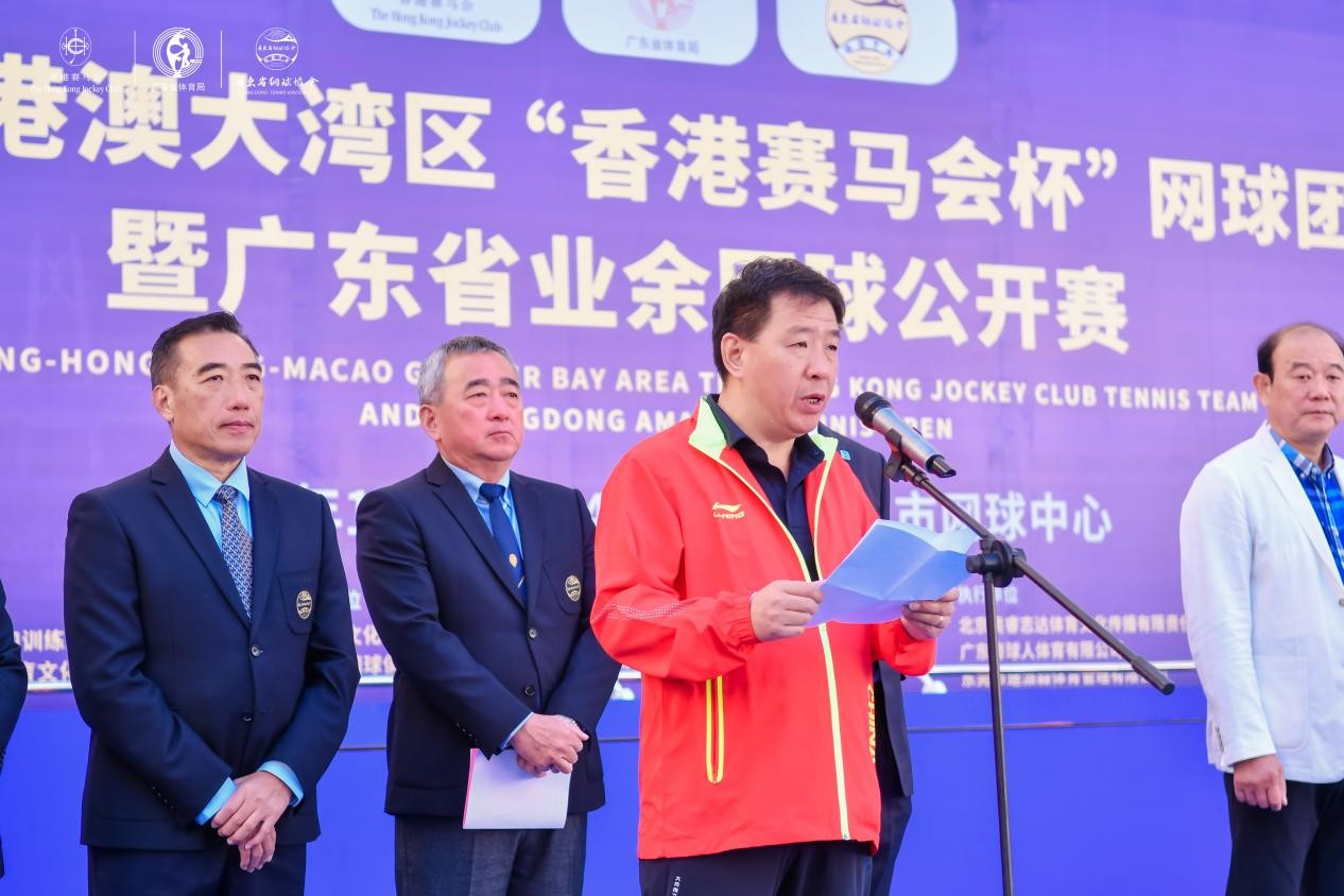 廣東省網(wǎng)球協(xié)會副主席賀東波代表廣東省網(wǎng)球協(xié)會和大賽組委會,向前來出席和參加比賽的各位來賓、運動員表示熱烈歡迎!廣東網(wǎng)球有廣泛的群眾基礎和良好的網(wǎng)球氛圍,在今年全國第十四屆全運會上,廣東群眾網(wǎng)球奪得3金2銀1銅的好成績。廣東省網(wǎng)球協(xié)會將繼續(xù)把賽事辦成粵港澳大灣區(qū)乃至全國具有影響力的品牌體育賽事,發(fā)揮網(wǎng)球在建設粵港澳大灣區(qū)中的凝聚力、感召力、參與協(xié)調力的作用,促進體育交流與合作,助力2025年粵港澳全運會的舉辦,推動粵港澳大灣區(qū)體育事業(yè)的發(fā)展。