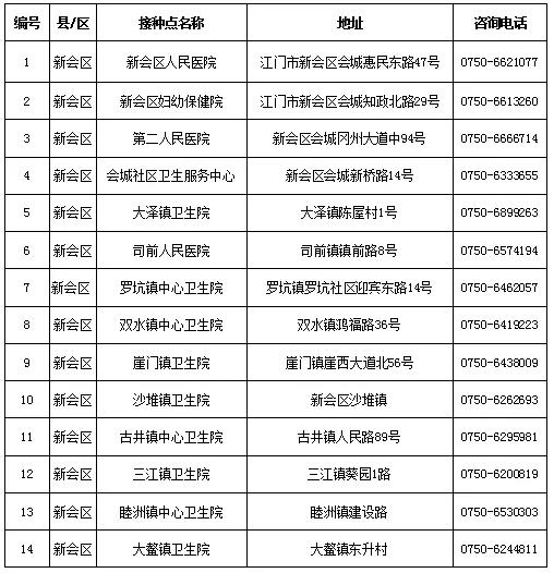 江門市新會(huì)區(qū)新冠疫苗接種點(diǎn)名稱、地址及咨詢電話一覽表