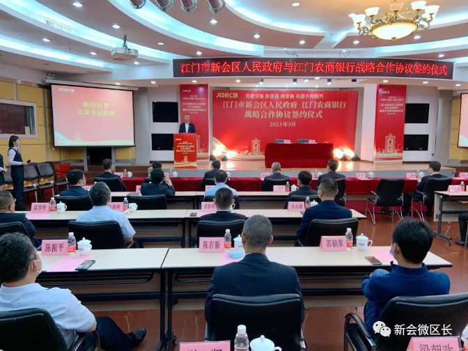 3月12日,新會區(qū)人民政府與江門農(nóng)商銀行簽署“黨建引領,你幫我、我?guī)湍?,共促鄉(xiāng)村振興”戰(zhàn)略合作協(xié)議。