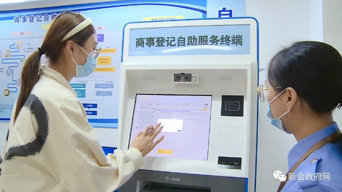 在區(qū)行政服務中心三樓,辦事群眾通過全市首個“商事登記自助服務終端”設備,僅幾分鐘就能獨立完成個體工商戶營業(yè)執(zhí)照申領的全部操作。
