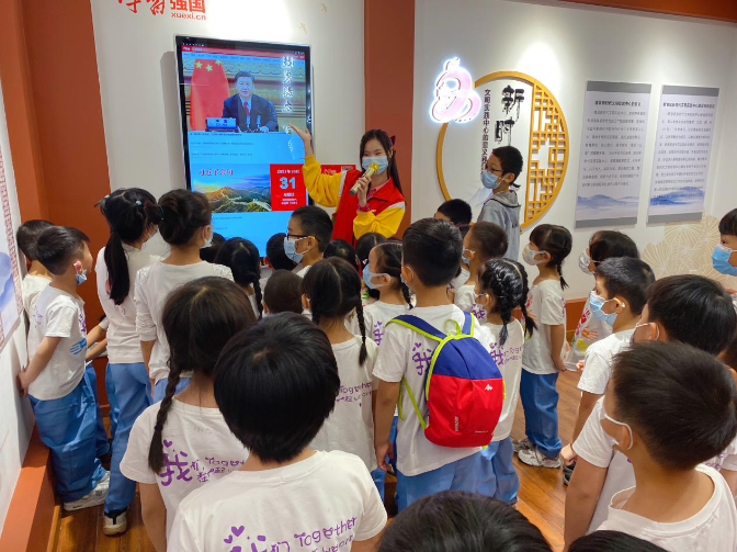 作為新會首批鄉(xiāng)村“復(fù)興少年宮”之一,新會區(qū)新時代文明實踐中心積極強化“造血”功能,于課余時間、節(jié)假日期間積極統(tǒng)籌、組織、打造“小紅星”宣講隊、“文明導(dǎo)賞員”志愿講解隊等未成年人志愿宣講隊伍。6位音樂黨課“小助教”——“文明導(dǎo)賞員”為這群萌娃開展紅色講解服務(wù),以《不忘來時路》影片播放、文明實踐圖片展示、新科技機器互動等“情景式”學(xué)習(xí)教育方式,引導(dǎo)萌娃們傳承紅色基因。