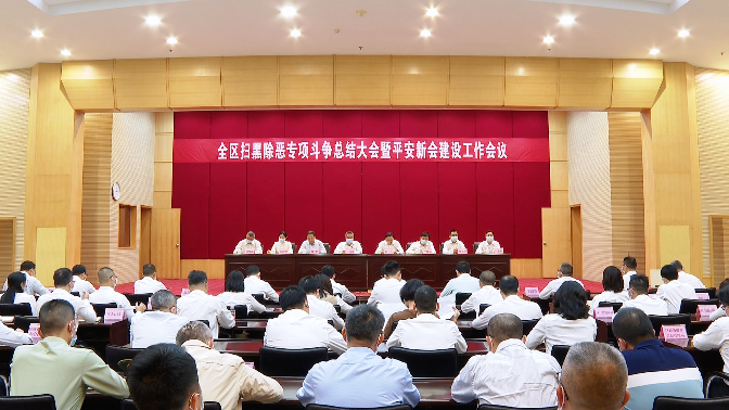 10月25日,我區(qū)召開全區(qū)掃黑除惡專項(xiàng)斗爭(zhēng)總結(jié)大會(huì)暨平安新會(huì)建設(shè)工作會(huì)議,總結(jié)我區(qū)掃黑除惡專項(xiàng)斗爭(zhēng)和平安新會(huì)建設(shè)工作,對(duì)新發(fā)展階段建設(shè)更高水平的平安新會(huì)進(jìn)行全面部署。