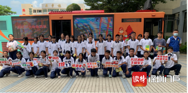 福田消防宣傳大巴開進校園。