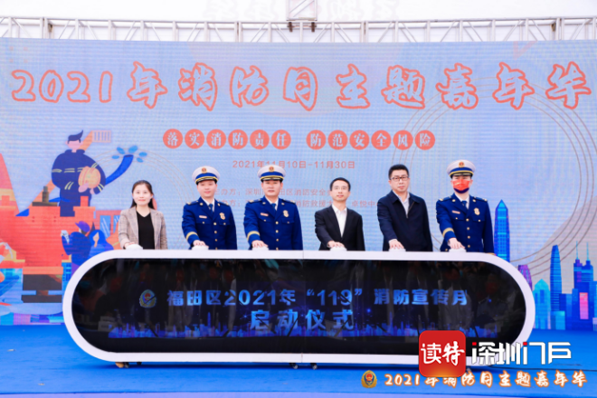 11月10日,福田區(qū)2021年“119”消防安全月活動啟動儀式在卓悅中心廣場舉行。福田區(qū)委常委、副區(qū)長葉文戈,深圳市消防救援支隊副支隊長許海雄,以及福田區(qū)消防安全委員會全體成員單位相關負責人、社會單位代表等共同參加活動。