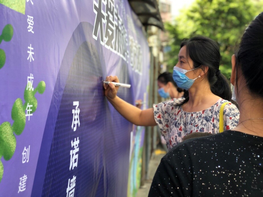 活動(dòng)伊始,草埔東社工主任向居民朋友介紹了做好未成年人關(guān)愛保護(hù)工作、促進(jìn)未成年人身心健康成長和保障未成年人合法權(quán)益的重要意義,不少居民在認(rèn)真聆聽的同時(shí),還積極與孩子交流討論,現(xiàn)場(chǎng)學(xué)習(xí)氣氛十分濃厚。隨后,主持人引導(dǎo)居民參與“未成年人保護(hù)法”相關(guān)知識(shí)競(jìng)答和書寫成長寄語環(huán)節(jié),把現(xiàn)場(chǎng)氣氛推向高潮。“愿健康、美麗”“愿你熱愛生命的春天,珍惜時(shí)間的清晨,積極奮進(jìn)去擁抱你光明的未來”“爸爸媽媽希望你快樂成長,希望你進(jìn)步”……寄語卡片無一不是父母用真情實(shí)意的文字,對(duì)孩子表達(dá)真摯的愛。