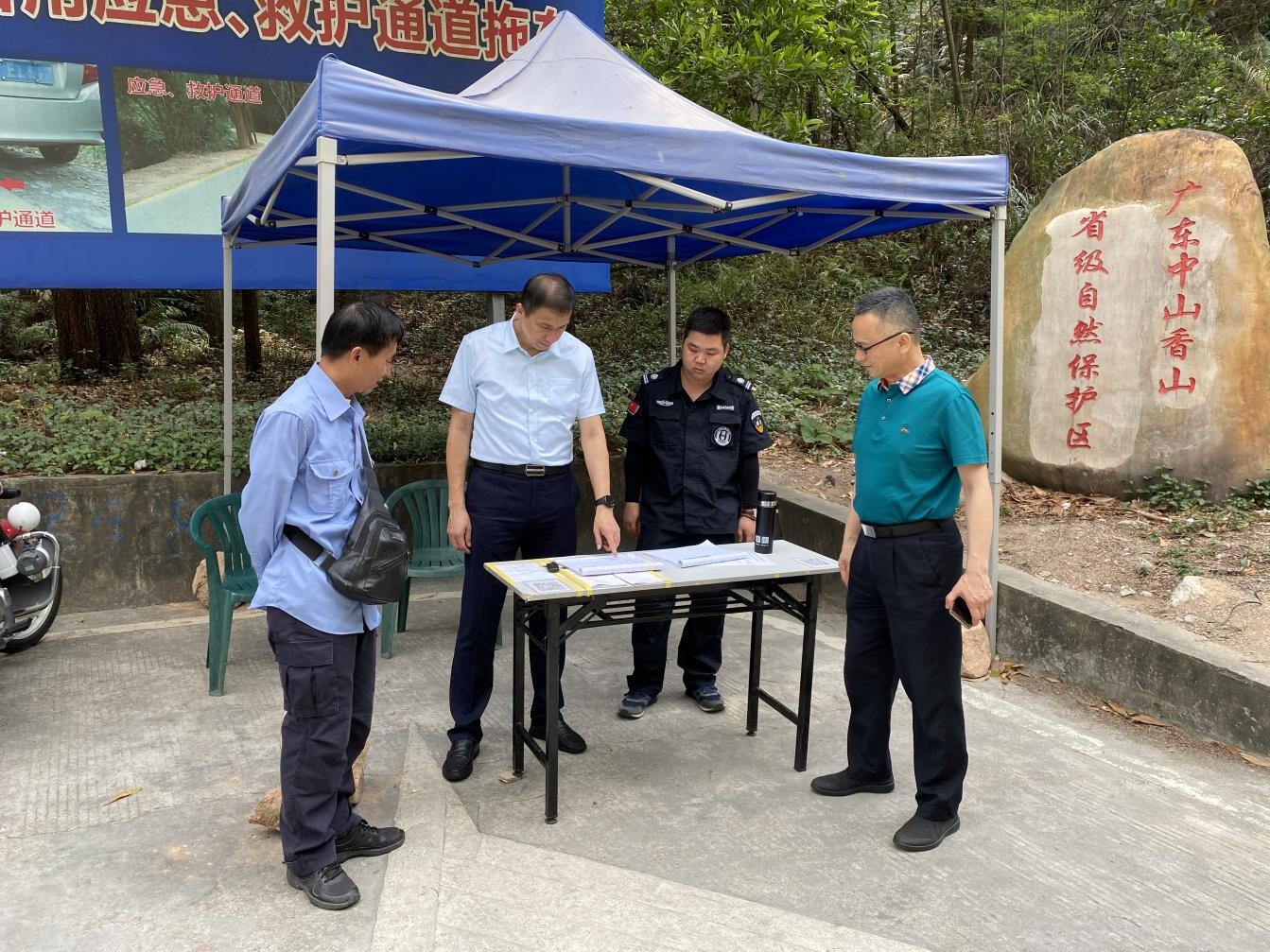 周俊峰書記一行首先來(lái)到福獲村村口實(shí)地檢查森林防火工作,詳細(xì)了解林業(yè)站日常值班制度、護(hù)林人員配備、物資保障、巡邏工作等各項(xiàng)措施落實(shí)情況。