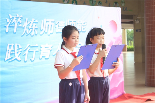 旭日東升的清晨,一句句“老師,教師節(jié)快樂”時不時回蕩在校園。慶?;顒由?,學生代表承載著同學們對老師們的美好祝福與感謝獻上了詩歌朗誦與手指舞。祝福雖短卻質(zhì)樸、動作簡單卻真摯,小小的表演溫暖著老師們的心。