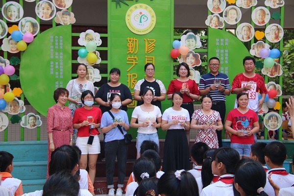 典禮伊始,全校師生肅立,奏響國歌,全體共唱國歌;禮畢,再合唱校歌。近年來,裕民小學(xué)散學(xué)典禮第一環(huán)節(jié)必是如此,目的是培養(yǎng)孩子們的愛國、愛校、愛家之心。