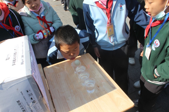 課堂展示后的游園活動讓整個校園變成了一個游樂場。26個班級,26個游戲攤位,沿著跑道圍成一個大大的圓圈。每個班級都精心準(zhǔn)備了一個與眾不同,趣味盎然的游戲,有“蛤蟆功”、“珠行萬里”、“墊球接力”等。家長們也協(xié)助老師開展游戲,雖然氣溫較低,但同學(xué)和家長們的額頭上的汗珠充分體現(xiàn)了大家的熱情和歡樂。這些精彩的游戲極具人氣,豐厚的獎品吸引了很多同學(xué)。在操場的正中央,學(xué)校少工委也組織少先隊干部為同學(xué)們奉獻(xiàn)上了動感舞蹈,吸引得同學(xué)和家長們駐足觀看,掌聲不絕于耳。同學(xué)們玩得開心,家長們忙得開心。老師們、家長們、孩子們臉上都洋溢著喜悅的笑容,華盛學(xué)校的操場上此時融匯了最精彩的瞬間和歡樂。