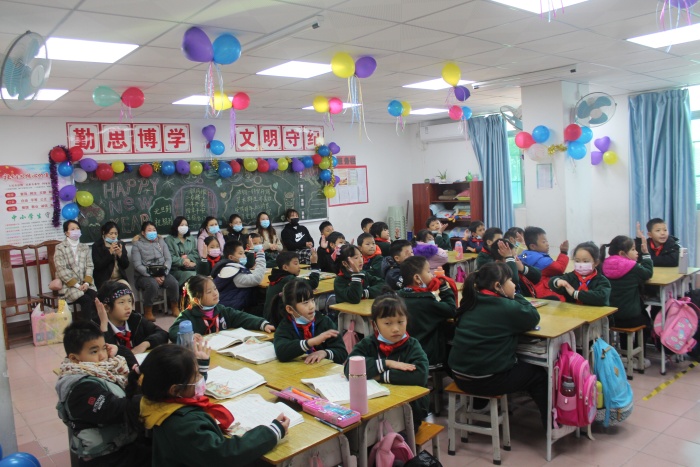 學(xué)校首先向家長們開放第一、二節(jié)的課堂教學(xué)。教學(xué)科目包含了學(xué)校的大部分課程,語文、數(shù)學(xué)、英語、美術(shù)、音樂、道德與法治……課堂上,每位老師都充滿激情,運用多種教學(xué)方式與學(xué)生互動,讓學(xué)生更多地展示。每一位學(xué)生也感受到家長的關(guān)注,積極思考,大膽發(fā)言,整個課堂充滿了和諧、融洽。每一位家長也都專注聽著老師的授課,關(guān)注孩子學(xué)習(xí)的每一個細(xì)節(jié),不時掏出手機(jī)記錄下課堂的精彩瞬間,他們的臉上露出了會心的微笑。