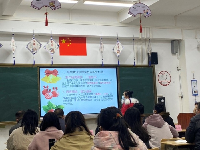 總結(jié)會(huì)首先由語文科組長(zhǎng)植藝遠(yuǎn)老師、數(shù)學(xué)科組長(zhǎng)宋潔老師、英語科組長(zhǎng)靜老師對(duì)本科組比賽情況進(jìn)行了一次完整總結(jié)和具有針對(duì)性的評(píng)價(jià)。他們分別從自主課堂+語文學(xué)科的“讀中悟”;視頻+數(shù)學(xué)學(xué)科的“練中學(xué)”;學(xué)習(xí)單+“境中讀”進(jìn)行了針對(duì)性的評(píng)課。并與老師進(jìn)行交流,大家在交流中不僅拓展了視野,對(duì)自主課堂的模式更有了更深的理解。