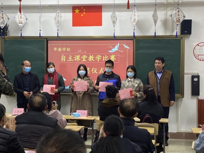 三位科組長(zhǎng)分別總結(jié)后,教務(wù)處主任宣布了本次“自主課堂”教學(xué)比賽中獲獎(jiǎng)老師名單。李春紅老師、黃亦成老師、吳恩妮老師、賴素文老師獲得一等獎(jiǎng);周金風(fēng)老師、張秀梅老師、黃華微老師獲得二等獎(jiǎng);歐錦清老師、張根秀老師、何曉丹老師獲得了三等獎(jiǎng)。由頒獎(jiǎng)嘉賓分別對(duì)獲獎(jiǎng)的教師頒發(fā)了榮譽(yù)證書和獎(jiǎng)金。