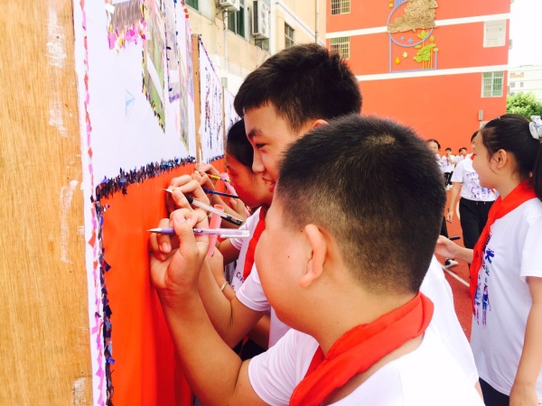 演出結(jié)束后,每位學(xué)生在畢業(yè)寄語墻上寫下了自己對學(xué)校想說的話,送給母校最后一份祝福,寫完之后走過“夢想之門”,與母校揮別,與這六年的小學(xué)生活揮別,憧憬即將到來的中學(xué)生活。
