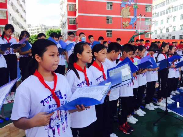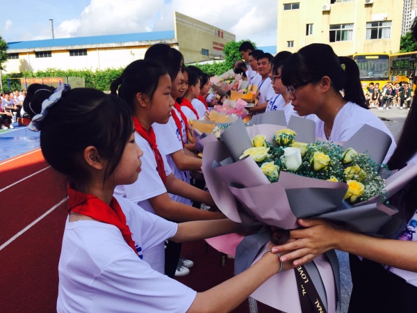 節(jié)目匯演的第一篇章是難忘母校,由六(1)和六(2)班全體學(xué)生帶來的朗誦節(jié)目《送給華盛的詩》。同學(xué)們深情地回顧了六年的小學(xué)生活,即將離開校園之際,眼含淚珠。接著王英普校長作了畢業(yè)寄語講話,向同學(xué)們表達(dá)畢業(yè)的祝賀,也祝愿同學(xué)們今后能夠走好人生路,成才報國。六(4)班全體學(xué)生帶來的手語操《感恩的心》把典禮的氛圍拉向高潮。學(xué)生代表給任課老師們送上鮮花,向老師們表達(dá)感恩之情。六(3)和六(5)班全體學(xué)生合唱的歌曲《微微》,與同學(xué)揮別,道一聲保重。