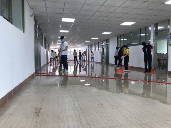 上午8時(shí)許,老師們開始了教學(xué)樓、辦公室的衛(wèi)生打掃工作。先是清掃灰塵,然后用水沖洗教室、各個(gè)樓層的走廊、廁所、窗戶等。教學(xué)樓的每一個(gè)角落老師們都認(rèn)真地清掃,消除衛(wèi)生死角。完成了教學(xué)樓公共區(qū)域的衛(wèi)生清掃工作后,老師們又對教室里的課桌椅、講臺(tái)、圖書柜等教學(xué)設(shè)施進(jìn)行了清潔。最后,老師們用配置好的消毒水對學(xué)校的每個(gè)角落進(jìn)行了全面的消毒。