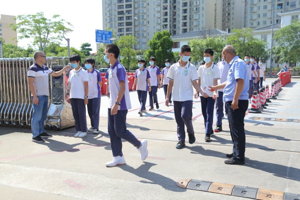 本次模擬演練主要分為四大場景:“學(xué)生入校溫度測試及監(jiān)控”、“學(xué)生出現(xiàn)發(fā)熱癥狀的應(yīng)急處置”、“不同路線的有序考試及有序離場”、“考場消毒和通風(fēng)”等依次進行。參演的老師與學(xué)生在演練中各司其位、各盡其職,按照規(guī)范程序模擬了初三考生英語聽說中考的各種突發(fā)狀況和應(yīng)急處置方法,充分檢測了學(xué)校英語聽說考試應(yīng)急預(yù)案的科學(xué)性、有效性和可行性。