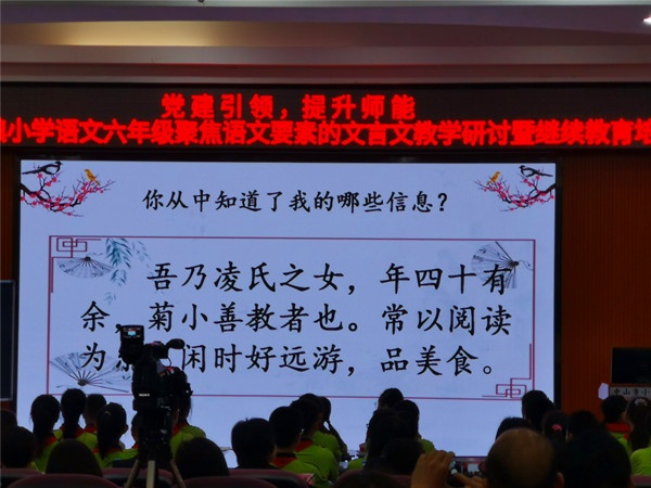 六年級組參加小欖鎮(zhèn)升平小學(xué)的文言文閱讀教研課例觀摩活動。首先是菊小的凌曉芳老師執(zhí)教《學(xué)弈》,第二節(jié)是豐華小學(xué)的谷米亞老師執(zhí)教《兩小兒辯日》。兩位老師教學(xué)流程順暢,各環(huán)節(jié)銜接自然,授課儀態(tài)大方,情感投入,語言感染力強(qiáng),師生互動融洽,教學(xué)過程中注重“讀”的訓(xùn)練,不斷創(chuàng)設(shè)情境朗讀、表演,讓學(xué)生的主體地位得到體現(xiàn)。在處理教材時由淺入深,層層推進(jìn),找準(zhǔn)教學(xué)的切入點(diǎn),做到讀中認(rèn)識,讀中理解、讀中感悟。課后,梁雪菊老師工作室的成員老師,結(jié)合兩節(jié)課例,進(jìn)行了精彩的點(diǎn)評。給聽課的老師們指明了文言文閱讀教學(xué)的方向,提供了寶貴的借鑒經(jīng)驗(yàn),受益匪淺。