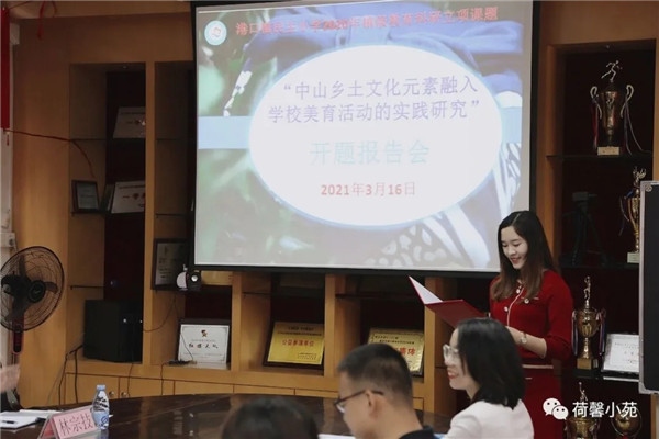 為了讓課題研究更科學(xué)、更規(guī)范,2021年3月16日上午,港口鎮(zhèn)民主小學(xué)召開(kāi)2020年鎮(zhèn)級(jí)立項(xiàng)教育科研課題“中山鄉(xiāng)土文化元素融入學(xué)校美育活動(dòng)的實(shí)踐研究”開(kāi)題報(bào)告會(huì)。參會(huì)的領(lǐng)導(dǎo)、專家有中山市教育教學(xué)研究室林曉潔老師、廣東省美育專家、中山市名教師劉堅(jiān)老師、劉堅(jiān)名師工作室助理龔寶香老師、港口鎮(zhèn)教育和體育事務(wù)中心蘇彩南老師,以及民主小學(xué)林宗技校長(zhǎng)、李菲菲主任和課題組全體成員。會(huì)議在學(xué)校的榮譽(yù)室舉行,由詹婉瑩老師主持。