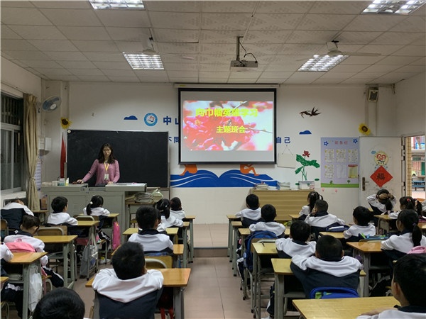 升旗儀式后,各班在課室開展以“感恩有你”為主題的班會課。