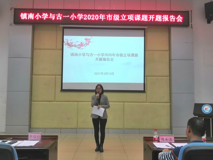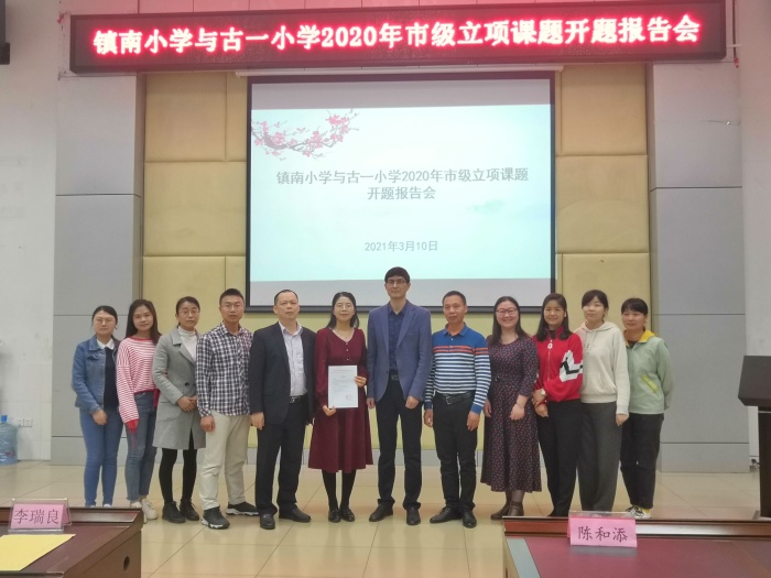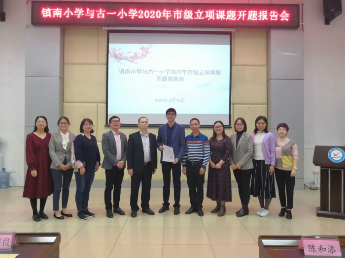 打印 |為進一步明確課題的研究思路,完善課題實施方案,明晰課題研究思路,再次論證研究課題,3月10日下午,鎮(zhèn)南小學與古一小學2020年市級立項課題開題報告會在鎮(zhèn)南小學報告廳舉行,三項市級立項課題《小學低年級數(shù)學繪本教學的行動研究》、《小學語文識字教學中滲透漢字文化的實踐研究》、《學科整合視域下小學優(yōu)秀傳統(tǒng)文化主題式課程開發(fā)與實踐研究》進行了開題工作。古鎮(zhèn)鎮(zhèn)教育與體育事務中心陳和添老師、李瑞良老師、古鎮(zhèn)小學馬焰副校長蒞臨指導。報告會由鎮(zhèn)南小學廖秋菊副校長主持,兩所學校市級立項課題組全體成員、學校各科組長、各學科負責人、骨干教師及樹人坊成員參加了會議。