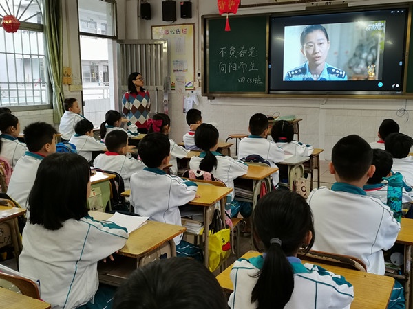 課程伊始,林校長播放著動人的春景圖,肆意生長的花草樹木,嘰嘰喳喳的鳥兒們這生機勃勃的景色一下子吸引了學(xué)生的目光。林校長在講述春天美好的同時,因勢利導(dǎo)引入今年春節(jié)期間中央廣播電視總臺《感動中國》頒獎節(jié)目的視頻,讓每位孩子了解抗疫英雄等獲獎?wù)叩母腥耸论E。并引用身邊普通勞動者和建設(shè)者的事跡,啟迪孩子們繼承奮斗者的精神力量。林校長進而教育孩子們,正因為有中國共產(chǎn)黨的堅強領(lǐng)導(dǎo),才有祖國的發(fā)展和現(xiàn)在美好幸福的生活。