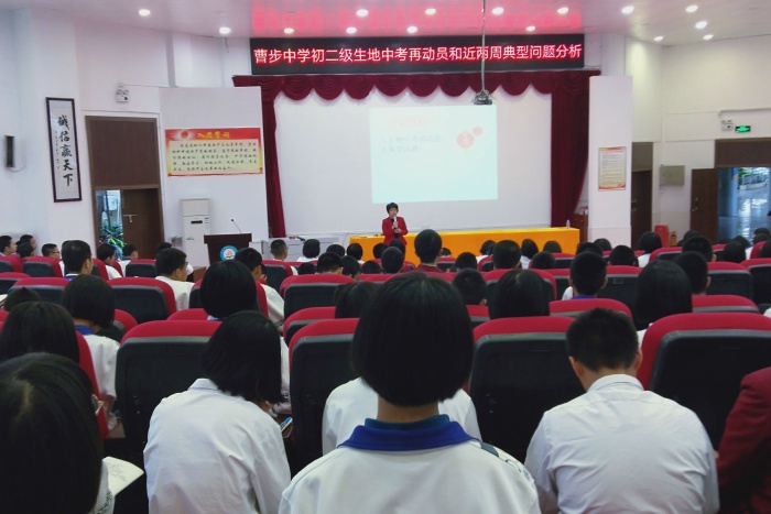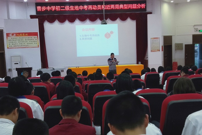 為了讓同學(xué)們迎接即將到來的第一戰(zhàn)——生地中考,做好萬全的復(fù)習(xí)備考,曹步中學(xué)于2021年3月22日下午第八節(jié)開展了“生地中考再動員和近兩周典型問題分析”為主題的年級學(xué)生會。初二全體師生參加了此次年級會。