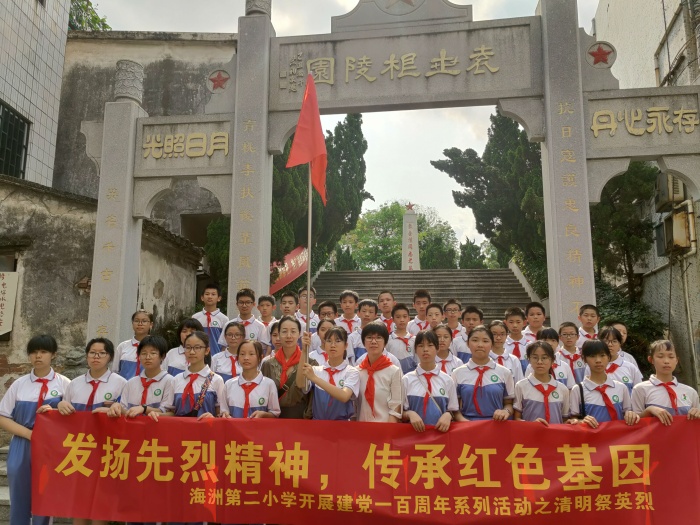 打印 |為慶祝建黨一百周年,進(jìn)一步加強黨員教師及學(xué)生的愛國主義教育,激發(fā)老師和同學(xué)們對革命先烈的緬懷之情,弘揚民族精神,海洲第二小學(xué)于4月2日開展以“發(fā)揚先烈精神,傳承紅色基因”為主題的清明祭英烈活動。