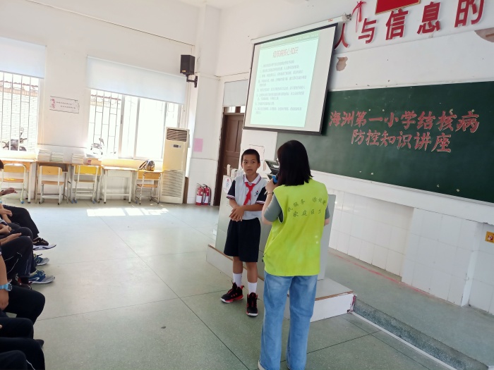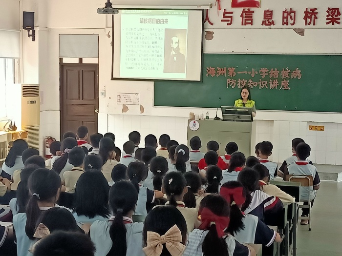2021年3月24日是第26個“世界防治結(jié)核病日”,為更好地認識這一天和結(jié)核病,海洲第一小學(xué)精心組織了這次講座。通過此次講座,海洲第一小學(xué)師生了解結(jié)核病的防控要點和學(xué)校防控結(jié)核病的重要性,增強防病意識,提高自我防范能力。為了減少肺結(jié)核的傳播和流行,保護廣大師生身體健康,海洲第一小學(xué)師生們將一起攜手,為守護健康校園而不懈努力!