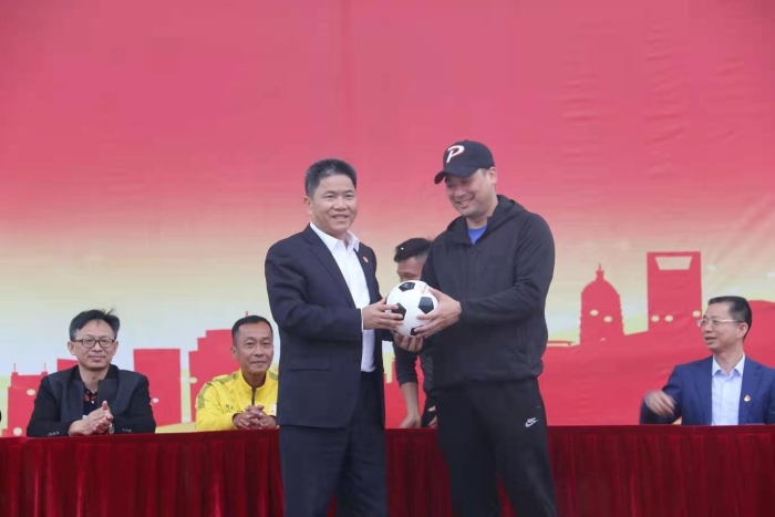 橫欄鎮(zhèn)教體中心體育專(zhuān)干黃軼鹍為本次活動(dòng)贈(zèng)球,黎碧?hào)|代表學(xué)校接受贈(zèng)球。隨后,出席開(kāi)幕式嘉賓及校領(lǐng)導(dǎo)到球場(chǎng)為比賽開(kāi)球,正式拉開(kāi)了這次校園足球聯(lián)賽的帷幕。