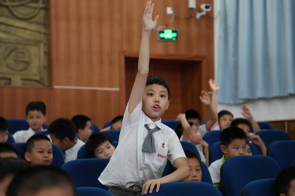 活動(dòng)由學(xué)校大隊(duì)輔導(dǎo)員杜沁源老師主持。杜老師首先介紹了此次活動(dòng)流程,并對(duì)領(lǐng)導(dǎo)嘉賓的到來(lái)表示熱烈歡迎。隨后,劉榮娟檢察官為同學(xué)們作了題為《法律是什么》的主題講座,她從法律的詞源和詞義、法律的特征、法律思維的養(yǎng)成三方面詳細(xì)講解,從“法”字的繁體字說(shuō)起,分析“法”字的結(jié)構(gòu),用講故事的形式,生動(dòng)地向孩子們介紹了何為法律。會(huì)上,劉檢察官循循善誘,用小故事引發(fā)學(xué)生思考,通過(guò)一個(gè)個(gè)問(wèn)題引導(dǎo)學(xué)生逐步分析,并和在場(chǎng)同學(xué)們熱情互動(dòng)。孩子們積極回答,踴躍發(fā)言。劉檢察官耐心引導(dǎo),認(rèn)真傾聽(tīng)回應(yīng),還深情講述了自己在檢察官崗位上,面對(duì)未成年犯罪人員時(shí)的痛心和無(wú)奈。