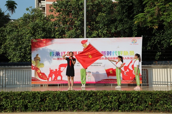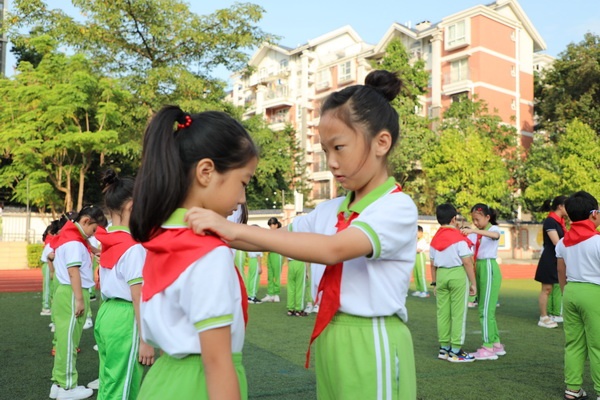 10月13日上午,開發(fā)區(qū)香暉園小學(xué)全體二年級(jí)師生及四年級(jí)的隊(duì)員代表齊聚一堂,在學(xué)校操場舉行“傳承紅色基因,爭做新時(shí)代好隊(duì)員” 主題隊(duì)日活動(dòng),120名新隊(duì)員在火紅的隊(duì)旗見證下,光榮加入了中國少年先鋒隊(duì)。