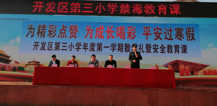會(huì)上,火炬開(kāi)發(fā)區(qū)濠頭村派出所民警察、三小駐校民警劉建國(guó)同志為全體師生進(jìn)行了寒假安全教育,并為獲得美德少年的學(xué)生進(jìn)行了頒獎(jiǎng)。劉警官?gòu)?qiáng)調(diào)假期用電用火安全,強(qiáng)調(diào)不能燃放煙花爆竹;警示同學(xué)們注意網(wǎng)絡(luò)安全,防御網(wǎng)絡(luò)侵害;最后,他進(jìn)行了禁毒教育,提醒師生假期聚會(huì)提高警惕,遠(yuǎn)離毒品。