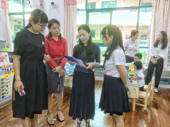 本次年檢,區(qū)教育事務(wù)指導(dǎo)中心制定了詳細(xì)的工作方案,從時間、對象、內(nèi)容、方法上對今年的年檢工作作了具體的安排:由區(qū)教育事務(wù)指導(dǎo)中心幼教專干黃翠媛老師及區(qū)疾控中心負(fù)責(zé)人黃國賢醫(yī)生擔(dān)任年檢總指揮,檢查組成員由疾控中心醫(yī)生、等級幼兒園園長、骨干教師及幼兒園保健醫(yī)生等組成,共分6個組同時進(jìn)行檢查。檢查組按照2019年度《中山市幼兒園年檢手冊》、《中山市托兒所年檢手冊》各項指標(biāo)要求,對受檢托幼機(jī)構(gòu)自2019年9月以來的辦學(xué)情況進(jìn)行全面檢查,對各園所的辦園(所)條件、幼兒園(托兒所)管理、衛(wèi)生保健三大方面進(jìn)行細(xì)致的評估督導(dǎo),在園(所)半天的時間里,檢查組通過察看園所環(huán)境、室場設(shè)施,隨機(jī)觀察幼兒半天生活、查閱檔案資料、深入課堂聽課、與保教人員溝通等各種渠道收集信息,對幼兒園的年度辦學(xué)情況做出客觀的判斷,并記錄扣分依據(jù),填寫詳盡的定性評價,最后通過反饋環(huán)節(jié)讓每一間受檢幼兒園明確今后努力的方向。