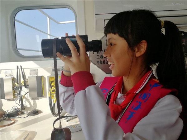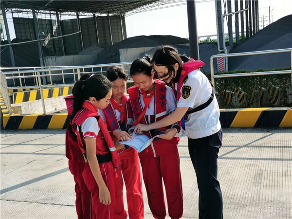 來到洪奇瀝水道,何志航處長向同學(xué)們介紹海巡船的設(shè)備設(shè)施,同學(xué)們親眼看到、親身體驗(yàn)到海巡船的設(shè)備設(shè)施,更學(xué)到了來源于實(shí)際生活而在課本上從沒學(xué)過的知識,使同學(xué)們充滿了深深的好奇,都想深入探究,一試為快。緊接著,船上一行登上黃圃港碼頭,何處長為全體人員介紹了黃圃港的建設(shè)新貌,
