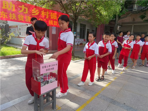 旭日東升,夏風習習,又是一個艷陽高照的周一早上,也是一個令人難忘的日子。2020年6月29日上午,為積極響應廣東省政府號召,關愛貧困人口,黃圃鎮(zhèn)石軍小學組織全校師生開展了“決勝脫貧攻堅,助力鄉(xiāng)村振興”的扶貧濟困捐款活動。