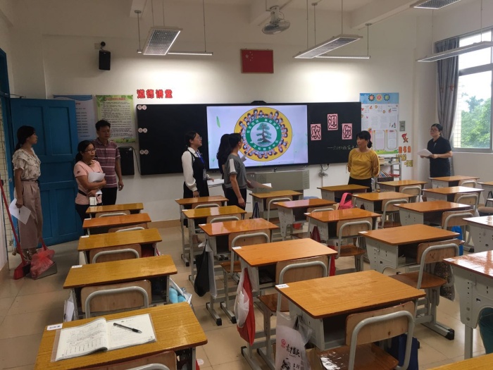9月28日下午4:30,五、六年級班主任在級組長梁景輝老師以及駐級行政的帶領下,首先來到六(4)班進行評比。六(4)班以“棕竹班”為建設背景,用棕竹為載體,開展讀畫講寫行五維一體的的特色班級——棕竹班。而六(3)班則以羅漢松為依托,以學生空間發(fā)展為目的而開展了以頑強拼搏為亮點的特色班級活動。