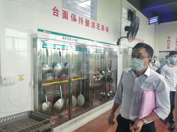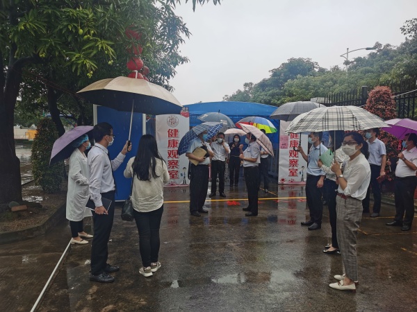 當(dāng)天,德恒校園里流連春光,舍不得凋零的幾支紫荊花被南國的驟雨擊落一地,落英繽紛,美麗極了。下午2:00,德恒學(xué)校全體行政滿懷信心在校門口列隊迎接市高三、初三復(fù)學(xué)防控工作專班的到來。2:30左右,市教育工委廖誠副書記帶領(lǐng)的驗收專班,在民眾鎮(zhèn)黨委劉釗妍委員和民眾鎮(zhèn)教指中心黃海文主任的引領(lǐng)下,來到德恒學(xué)校。一行人在學(xué)校門口測完體溫和進(jìn)行必要消毒后,隨即開始了對德恒學(xué)校高三、初三復(fù)學(xué)防控準(zhǔn)備工作的實地查驗。驗收專班一行人首先來到學(xué)校健康觀察室,查看了觀察室的防疫物質(zhì)配備,檢查了消毒通風(fēng)情況。接著來到學(xué)生宿舍,看到德恒學(xué)校學(xué)生宿舍干凈整潔,通風(fēng)良好,了解了學(xué)校初三、高三學(xué)生全部寄宿,每間宿舍只安排三名學(xué)生等情況。隨后查看了食堂操作間和學(xué)生餐廳,他們不僅對食堂的整潔規(guī)范給予了高度評價,還特別對學(xué)校安排班主任和行政陪同就餐管理學(xué)生的這個細(xì)節(jié)提出了贊賞。再接著一行人查看了學(xué)校保健室、防疫物資儲備室、教室。最后,就地在備用教室召開了反饋會。在會議中,廖書記說,他幾年前來過此地,但當(dāng)時還不叫德恒學(xué)校,今天再到這里,他對德恒兆業(yè)教育集團(tuán)接收這所學(xué)校后帶來的巨大變化感到驚喜和意外。他同時強(qiáng)調(diào),德恒學(xué)校這次高三、初三復(fù)學(xué)防控準(zhǔn)備工作完成得非常好,要學(xué)校及時總結(jié)做法和經(jīng)驗,并將其推廣到后續(xù)其他年級的復(fù)學(xué)防控準(zhǔn)備工作中,甚至要在民眾鎮(zhèn)乃至中山市加以推廣,并最后激勵德恒全體行政要再接再厲。